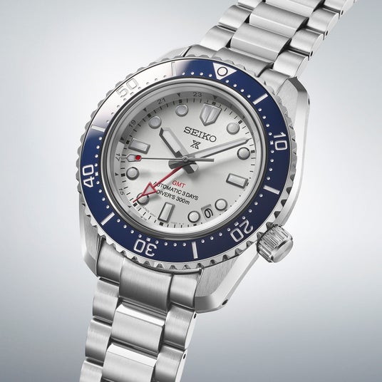 1968年に発売されたモデルのデザインを基に、時差のある2つのタイムゾーンの時刻を表示できるGMT機能を備えた「キャリバー6R54」を搭載した「ダイバーズ 1968 ヘリテージ GMT」を300メートル空気潜水用防水にスペックアップ。また、レギュラーモデルでは初採用となる新開発の中留により、快適な操作性とワンランク上の着用感を実現しました。セイコーダイバーズウオッチ60周年という節目にさらなる進化を遂げたモデルです。