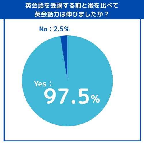 1.約97.5%の受講生が「英会話力が伸びた」と実感