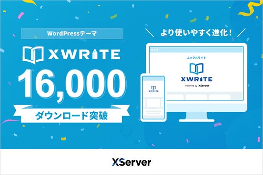 エックスサーバー株式会社(所在地:大阪市北区、代表取締役:小林尚希)は、当社が開発・提供するWordPressテーマ『XWRITE(エックスライト)』の累計ダウンロード数が16,000件(※1)を突破したことをお知らせします。