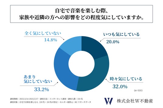 自宅で音楽を楽しむ人の半数以上は、自宅で音楽を楽しむ際、家族や近隣の方への影響を気にしている!株式会社W不動産が「自宅で音楽を楽しむ人の実態調査」を実施!
