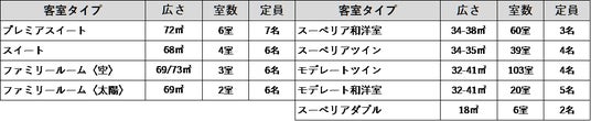 243室ある客室は、35平方メートル ほどの広さのタイプが最も多く、3~4名様でもお泊りいただけます。また、約70平方メートル のスイートルームやファミリールームは最大6~7名様のご宿泊が可能で、ファミリー旅行やグループ旅行に最適です。