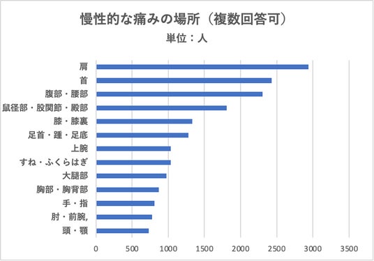 慢性的な痛みがある場所の1位は「 肩」、2位は「首」、3位は「腰」でした。