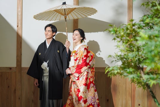 本格的な日本庭園と茶室を再現した、屋内庭園スタジオでの撮影プランです。人目を気にせず、ロケーションフォトのような和装撮影をお楽しみいただけます。