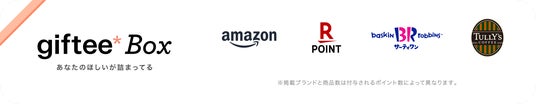 ※「giftee Box(R)」は、株式会社ギフティが提供するデジタルギフトであり、様々なラインナップの中から贈呈された「ギフトポイント」内でお好きな商品と交換することができます。「giftee Box(R)」および「ギフトポイント」の利用には会員登録やアプリダウンロードの必要もなく、保有ポイント内で複数の決済サービスポイントを選ぶことも可能です。