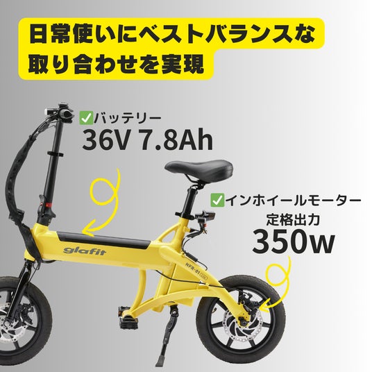 36V、7.8Ahのバッテリーと定格出力350wモーター搭載