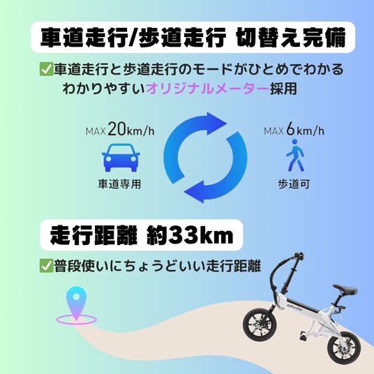 車道走行モード20km/hと歩道走行モード6km/hの切り替え