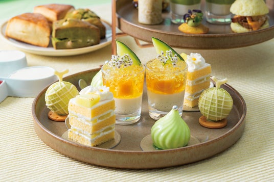 旬のメロンを贅沢に使用した、初夏の爽やかなアフタヌーンティーをどうぞお楽しみください。
