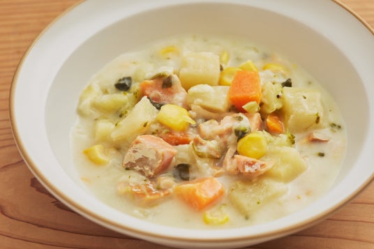 ▲ゴロッとした食感が楽しい「鮭のクリームシチュー」