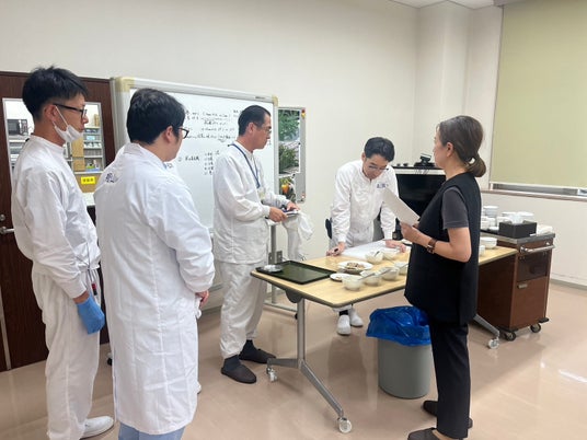 ▲たがみ氏は当社九州工場にも出向き打ち合わせを実施。味はもちろん噛む力をはぐくむ咀嚼感にもこだわったメニューを監修