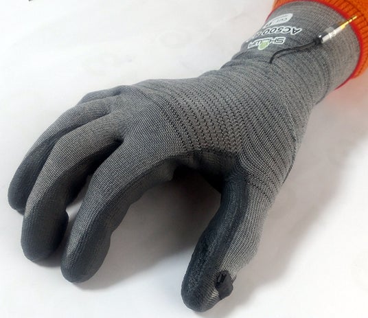 ロボセンサー技研株式会社が開発した手袋型触感センサーは、当社が提供する超高感度のロボセンサー(R)(極細ワイヤー状のピエゾ方式センサー(※-3))を手袋の指の上に設置することで、柔軟で軽量、人の手作業を殆ど制限することのない触感センサー手袋を実現しています。