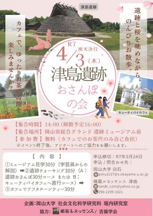 国立大学法人岡山大学(本部:岡山市北区、学長:那須保友)の大学院社会文化科学研究科堀内研究室が2025年4月3日、「津島遺跡おさんぽの会」を開催し、本学学生と関係者、地域の方々約25人が参加しました。