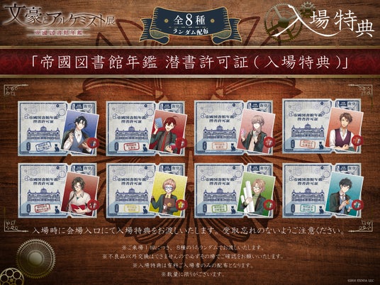 入場特典として、「帝國図書館年鑑 潜書許可証(ランダム全8種)」をお渡しします。