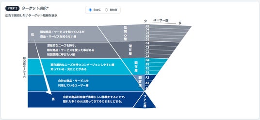 これまで培ったマーケティング業務ナレッジを言語化し、独自AIを実装し、広告したい商材/サービスの属性情報や狙いたい層などを選択するだけで、僅か1分でどの広告媒体に掲載すればより良い効果がでるかを定量的に出力します。