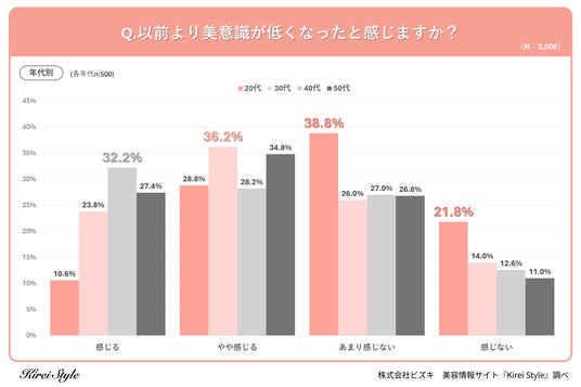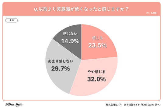 以前より美意識が低くなったと感じる?◯◯代を境に「低くなった」が過半数を超える結果に