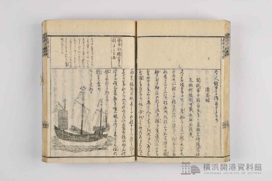 「長崎江黒船着岸之節御人数被差越候一件之抜書(我利阿武船入津御船備之図添)」正保4(1647)年、天保14(1843)年写 横浜開港資料館所蔵