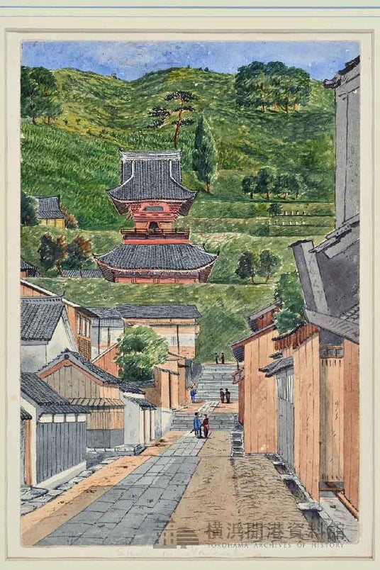 長崎の町かど「Street in Nagasaki」C.C.キング画 幕末期 横浜開港資料館所蔵