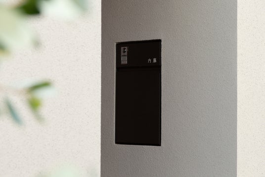 BrikのPost(郵便受け)は、扉を開けて投函する構造を採用することで、投函口が外から見えず、雨風の影響を受けにくく、郵便物が濡れにくい工夫も施されています。うすいフレームのデザインにより、造作のような佇まいで、洗練された印象に。