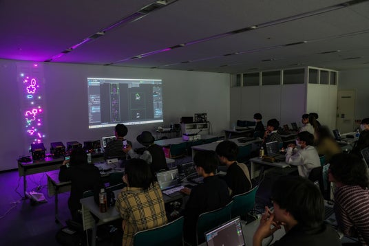 本プロジェクトでは、29歳以下の若手クリエイターを対象に、レーザーマッピング作品の一部を公募しています。公募に先立ち実施されたワークショップには、11組、総勢19名が参加しました。第一線で活躍する講師陣による技術指導のもと、次世代の映像演出を体験しながら学べる貴重な機会となりました。
