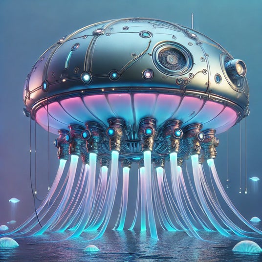 「ネオ・クラゲ号」は、未来の海洋資源探査とあったらいいなの漁業をテーマにしたコンセプトデザインです。この漁船は、クラゲの形をした潜水艦であり、触手のように伸びる網を使って魚を捕獲します。