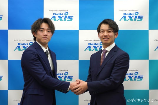 大政 涼選手(左)とダイキアクシス社長・大亀