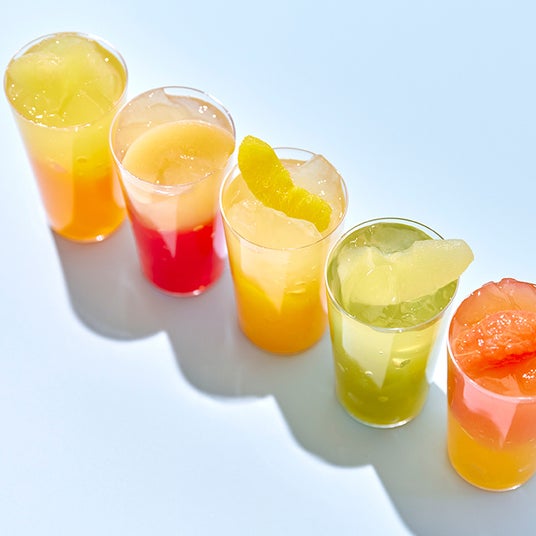 グレープフルーツ&オレンジ×1、ピーチ&チェリー×1、パイナップル&マンゴー×2、レモン&ラ・フランス×2