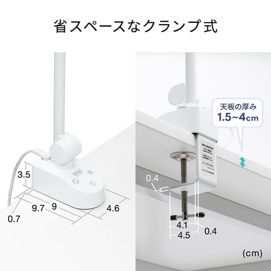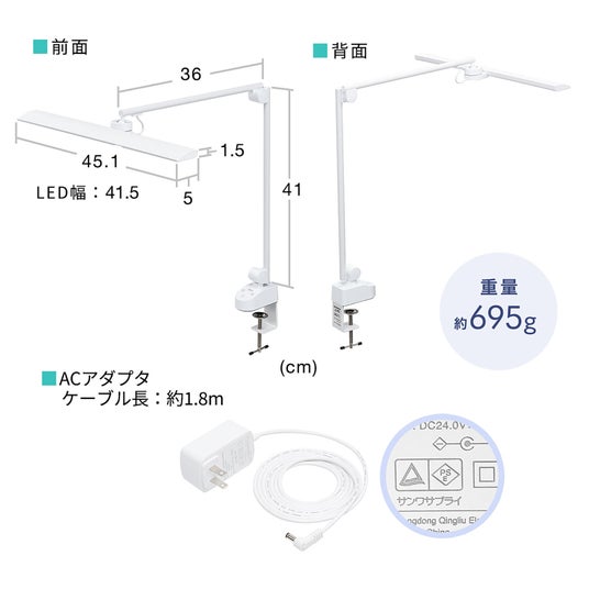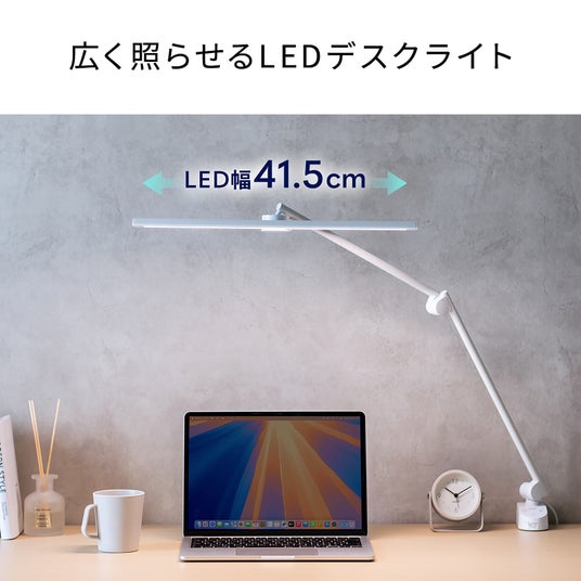 デスクライト 広範囲照射LED 調光調色 アームライト タッチセンサー クランプ固定 横幅45cm ホワイト