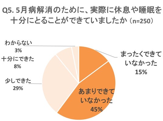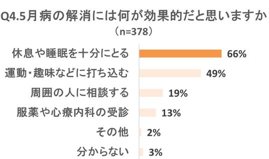 ー66%が5月病解消に「休息や睡眠を十分にとる」ことが効果的とする一方で、60%が実践できなかったと回答