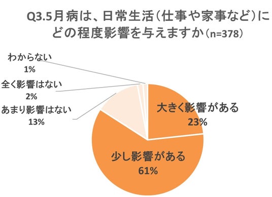 71%が「疲労感・だるさ」を実感。84%が、5月病が日常生活(仕事や家事など)に影響すると回答