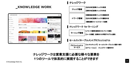ナレッジワーク社は、セールスイネーブルメント(営業支援)の国内リーディングカンパニーとして、優れたUI/UXを備えたプロダクトと、再現性と実効性を兼ね備えたセールスイネーブルメント支援を数多くの大手企業様に提供してきました。