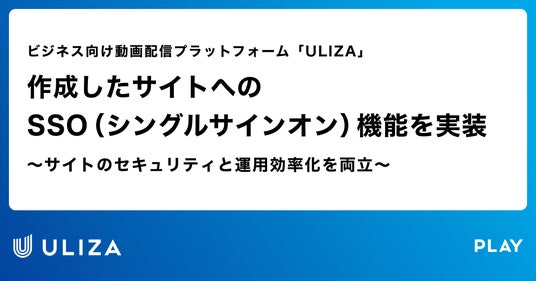 法人向け動画配信プラットフォーム「ULIZA(ウリザ)」を提供している株式会社PLAY(本社:東京都渋谷区、代表取締役社長:黒田和道)は、「ULIZA」のサイト作成機能において、SAML(Security Assertion Markup Language)によるIDaaS連携に対応した、SSO(シングルサインオン)ログイン機能をリリースしたことをお知らせいたします。
