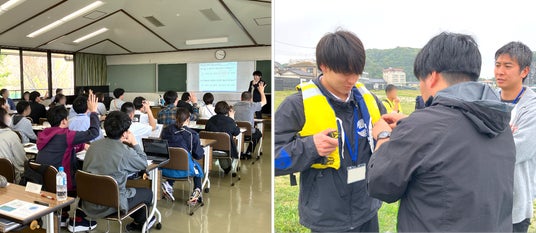 実施内容:海の特徴や人とのつながりに関する講義、ライフジャケットの着用方法、漁港見学・解説、