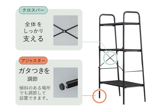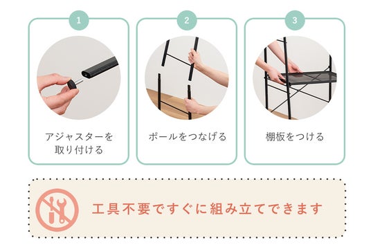 ラックは工具不要・軽量のため、1人で組み立ても移動も楽々の便利な設計です。