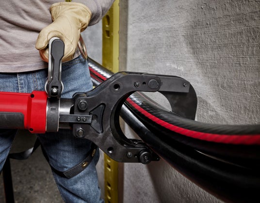 最大125mmのCu/Alケーブル切断能力で、地中送電、変電所、地中配電などの電力設備、通信事業者やデータセンター等での作業に対応「M18 FORCE LOGIC 125mm電動油圧式電線カッター」