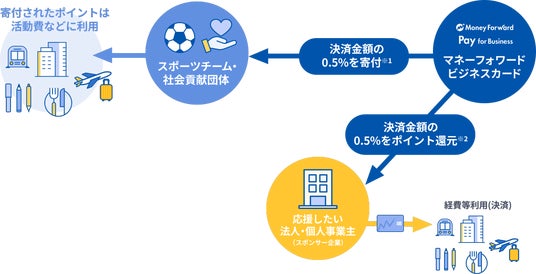 「『マネーフォワード ビジネスカード』スポンサーポイント」は、スポーツチームや社会貢献活動を行う団体などを応援したい企業や個人事業主が、事業用の支払いを『マネーフォワード ビジネスカード』で行うことで、還元されたポイントをスポーツチームや社会貢献団体などへ寄付できるプロジェクトです。