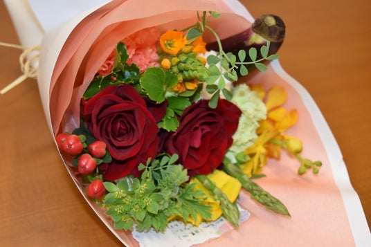 ナスとアスパラガスが入ったブーケ