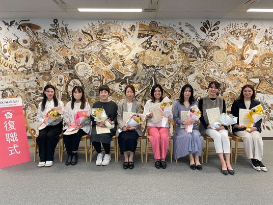 復職式は、育休からの復職後、職場環境の変化への適応に悩みや不安を抱えた女性社員の実体験をもとに2017年に企画して以降毎年開催しており、これまでに男性を含め多くの育休復帰の社員が参加しています。会社から「おかえり」の気持ちを伝えることで、復職への不安を軽減し、気負いすぎずに戻ってきてほしいとの思いが込められています。