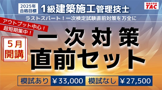 【TAC1級建築施工管理技士】一次対策直前セット新登場!