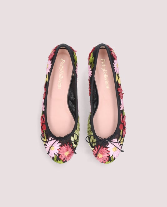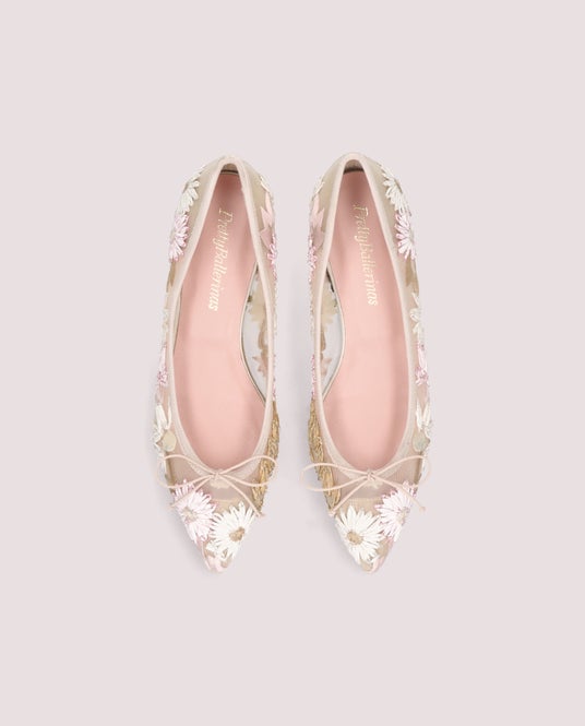 2025年5月15日(木)より、Pretty Ballerinas店舗およびオンラインストアにて順次発売開始。繊細なチュール素材に咲き誇るフローラル刺繍が足元を華やかに彩ります。