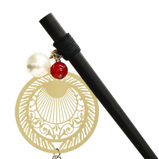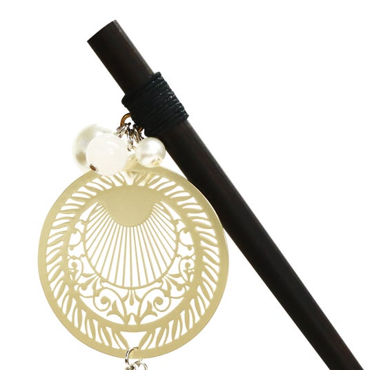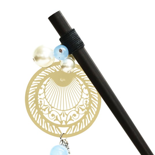 展開中の人気簪「透かし影絵一本簪 ゼウス」に続き、ギリシャ神話の太陽神「アポロン」をイメージした簪が新登場。メインプレートには、象徴である“太陽”の光芒を透かし模様として影絵のように繊細にデザインした他、「アポロン」が芸術や文化を司る神であることにちなみ、「月桂冠(ラウレル)」の意匠を取り入れました。月桂冠は、古代より優れた才能への賛美として贈られてきた栄誉の象徴で、中国神話において「月にある永遠の命を宿す木・桂」を由来とし、縁起の良い植物とされています。