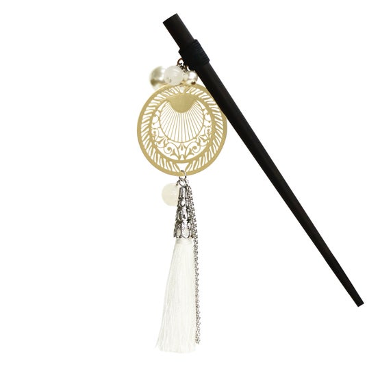 太陽と月、そして美と知といった文化の象徴をデザインした存在感のあるメインプレートと大ぶりなタッセルが、身に着ける姿を神々しくも印象的に演出。感性を大切に生きるすべての方に贈る特別な一本。ギフトにもふさわしい逸品です。