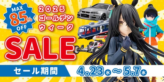 ホビーサーチでは2025年度ゴールデンウィークセールが開催中です、フィギュアやプラモデルなどの人気ホビー商品を最大85%OFFで購入できます。