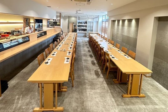 目の前で握りたてを味わえるロングカウンターは板前との楽しい会話や、臨場感も伝わる人気のお席。※予約必須