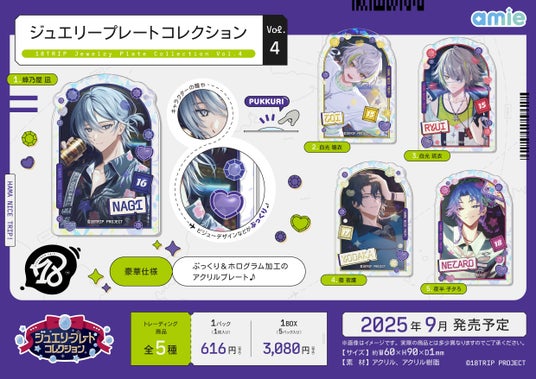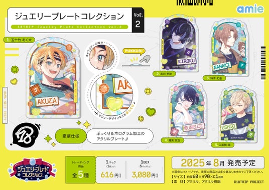 フィギュア&ホビー通販大手の「あみあみ」を運営する大網株式会社(本社・東京都文京区)は、自社が展開するグッズブランド「amie(アミィ)」から『18TRIP』の「フレフレスケルトンうちわDX Vol.1/Vol.2」「ジュエリープレートコレクション Vol.1~4」を現在、ご案内中です。