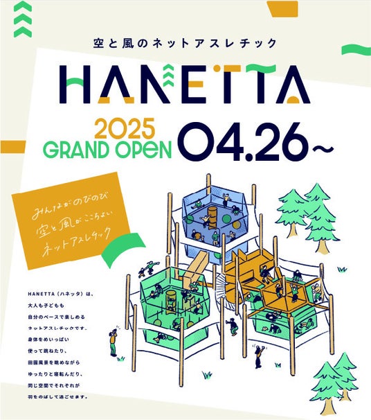 空と風のネットアスレチック「HANETTA」が4/26オープン