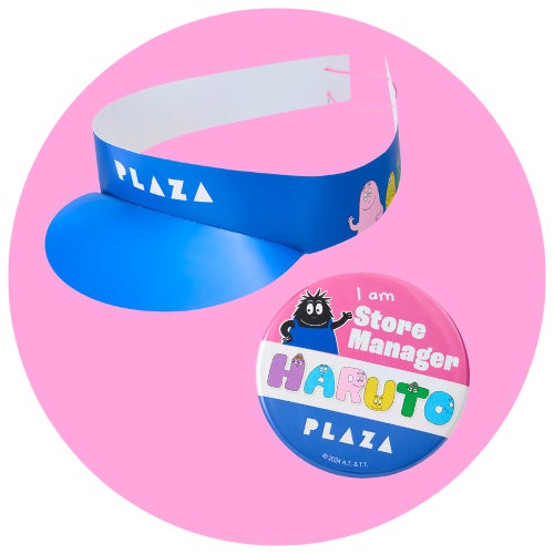 参加してくれたお子さまにキャップとネーム缶バッジをプレゼント!