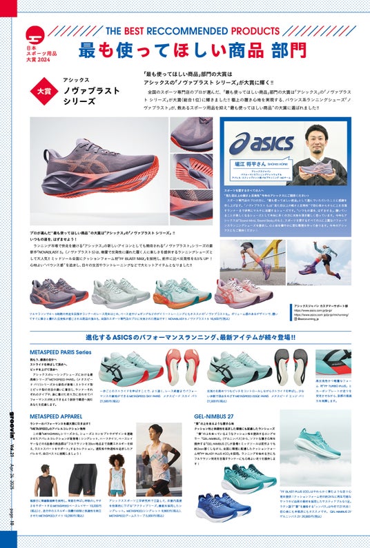 日本スポーツ用品大賞実行委員会(東京)と株式会社グランドフリートは、スポーツライフスタイルマガジン「groovin’」(グルーヴィン)の2025年春号を発行しました。コンテンツでは「日本スポーツ用品大賞2024結果発表!!」をはじめ、スポーツ&アウトドアにまつわる注目の話題や魅力的な人々や、革新的なプロダクトを一挙大紹介しています。