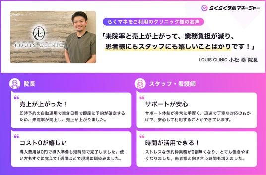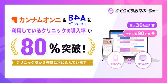 【予約管理工数を1院あたり月30時間削減】らくらく予約マネージャーが導入率80%を突破*1*2