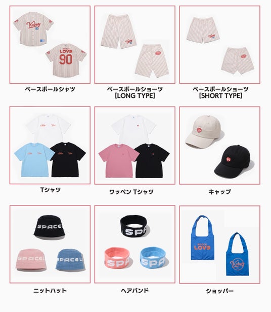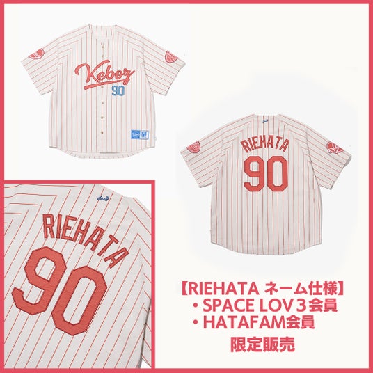 今回のコラボレーションでは、背面に“SPACE LOV3”ロゴとRIEHATAの生まれ年“90”の背番号を配したベースボールシャツをはじめ、セットアップ可能なショーツ、Tシャツ2型、キャップ、ハット、ヘアバンドの計7型をラインアップ。
