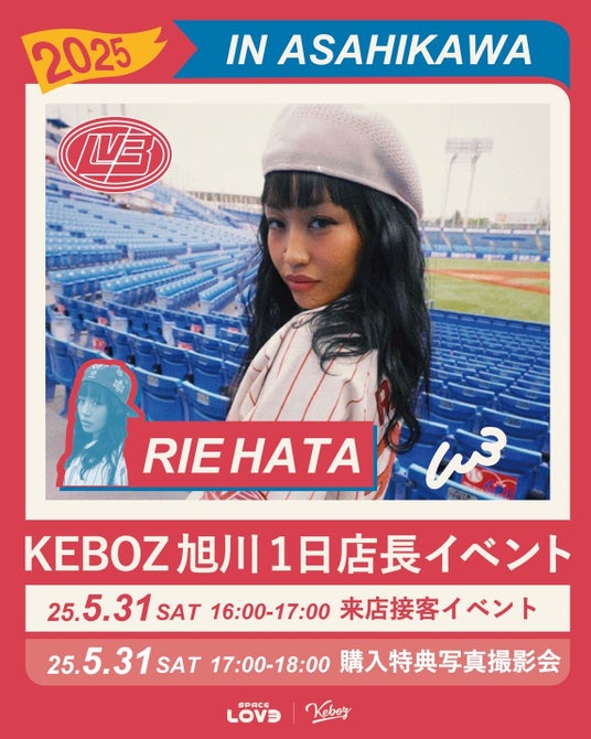 SPACE LOV3とKEBOZのパートナーシップを記念し、5月31日(土)にはKEBOZ旭川店にてRIEHATAが“一日店長”として来店するスペシャルイベントを開催します。コラボレーション商品をご予約いただいたお客さまは、ハズレなしのくじ引きにご参加いただけます。1等賞では、RIEHATAと一緒にダンスチャレンジ動画の撮影ができる貴重な機会をご提供いたします。