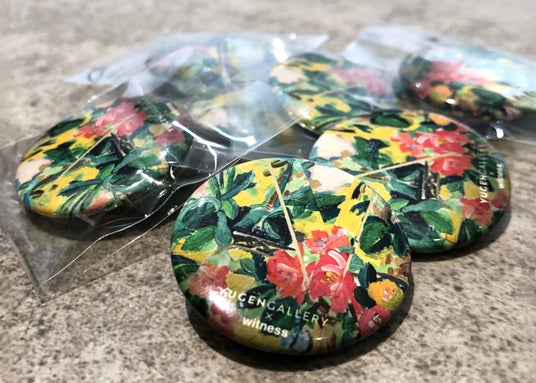 現代アートギャラリーYUGEN Gallery FUKUOKA(福岡・大名/運営:株式会社ジーン)では2025年4月26日(土)~5月15日(木)より、開催中のwitnessの個展「NEIGHBORHOOD」にて、オリジナルグッズの販売と、来場者限定でオリジナル缶バッジをプレゼントしています。